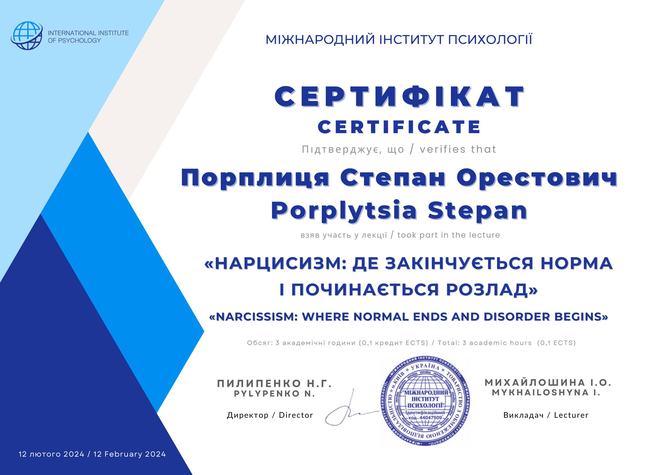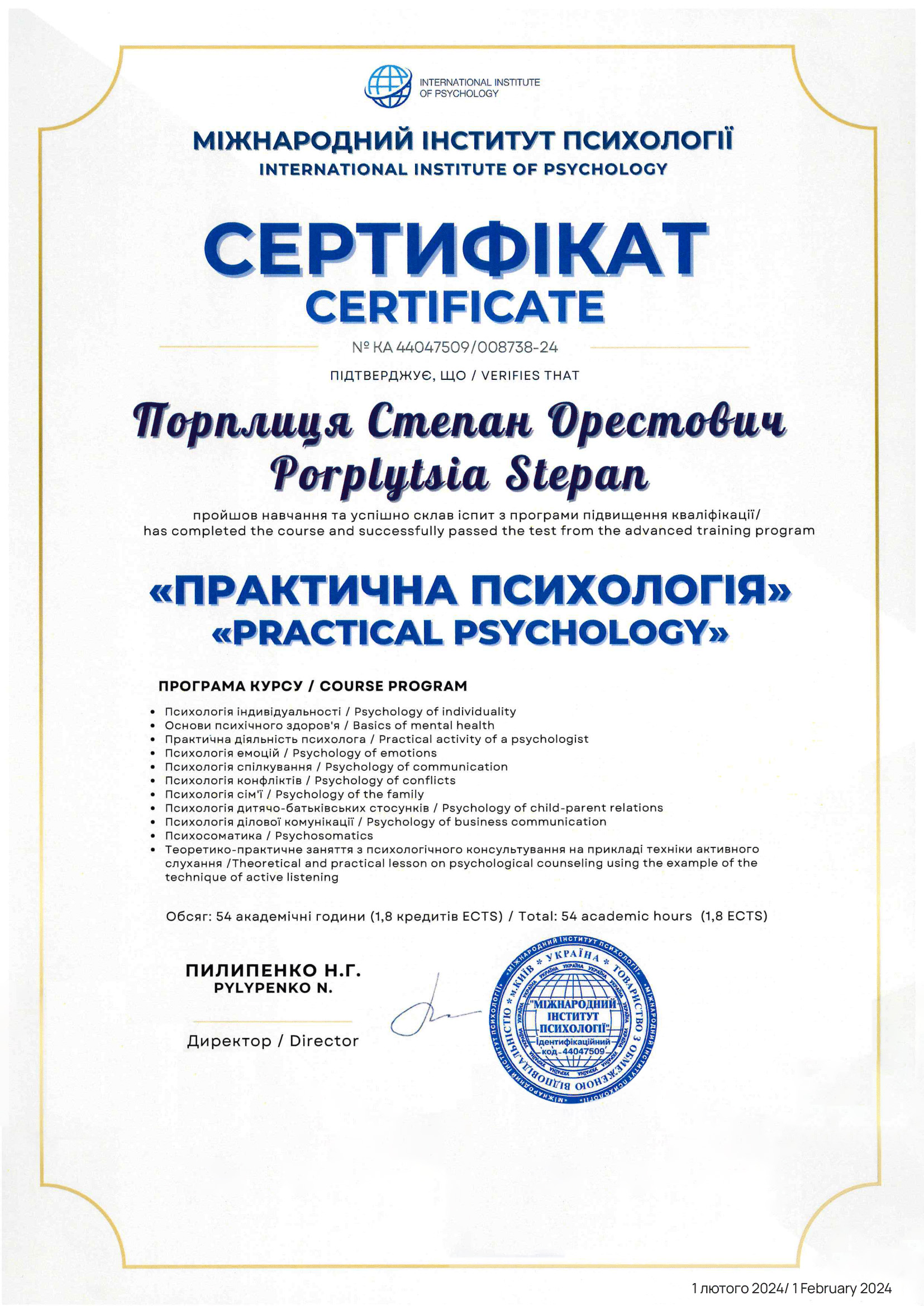 Київський інститут сучасної психології та психотерапії («Клінічна психологія» 053)