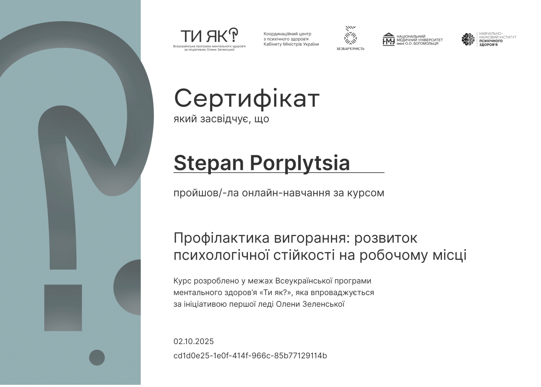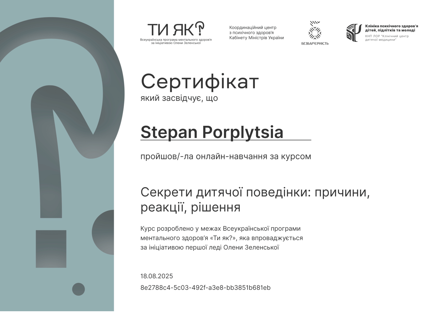 Для мене освіта — це постійний процес. Бути психологом чи психотерапевтом означає вміти вчитися завжди, за будь-яких умов та обставин. І це не про швидкоплинні тенденції чи необхідність розвитку, а про здатність нести світло знань і допомагати людям досягати стійкості та щастя навіть у найскладніші часи.
