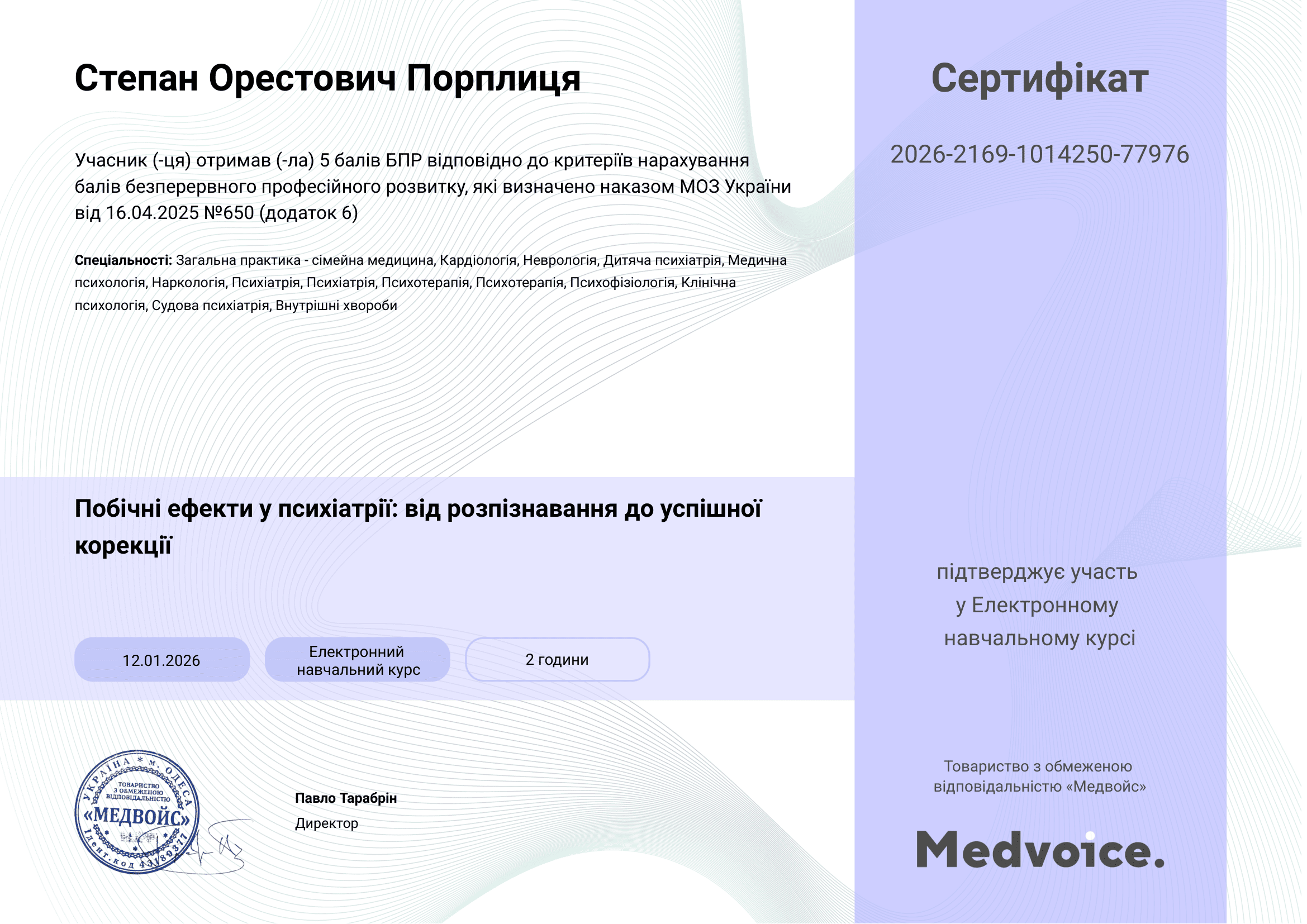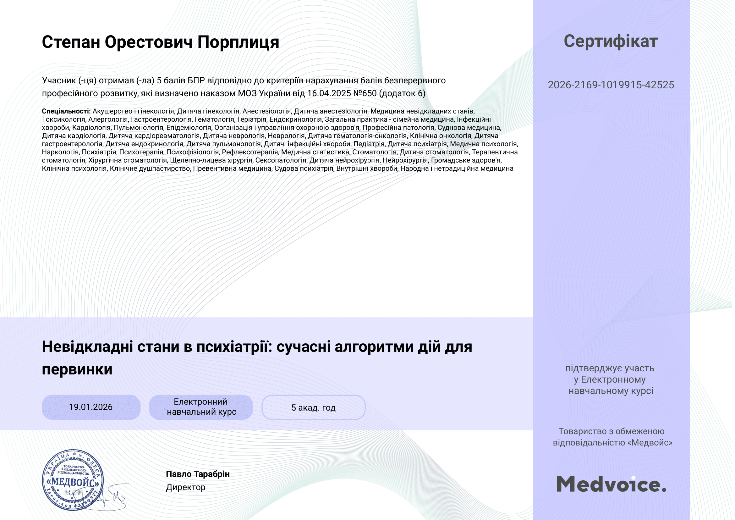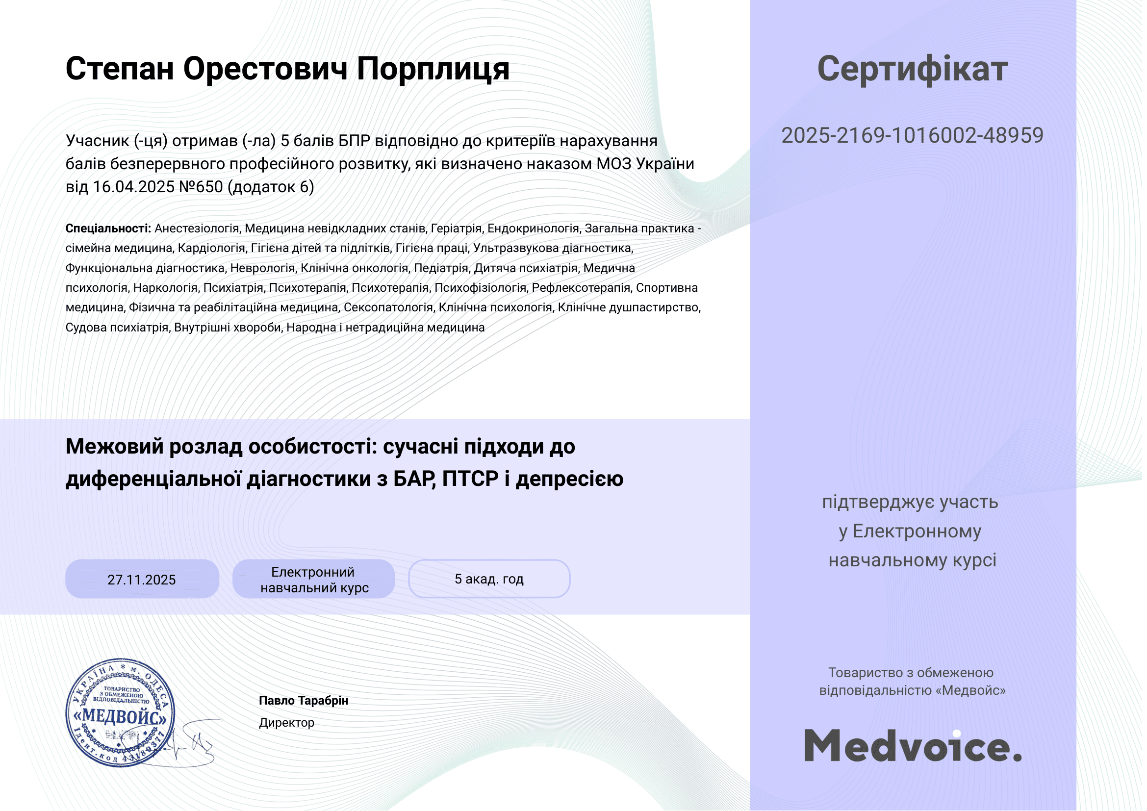 5. Лікарня ТМО «Психіатрія» — практика в умовах стаціонару;