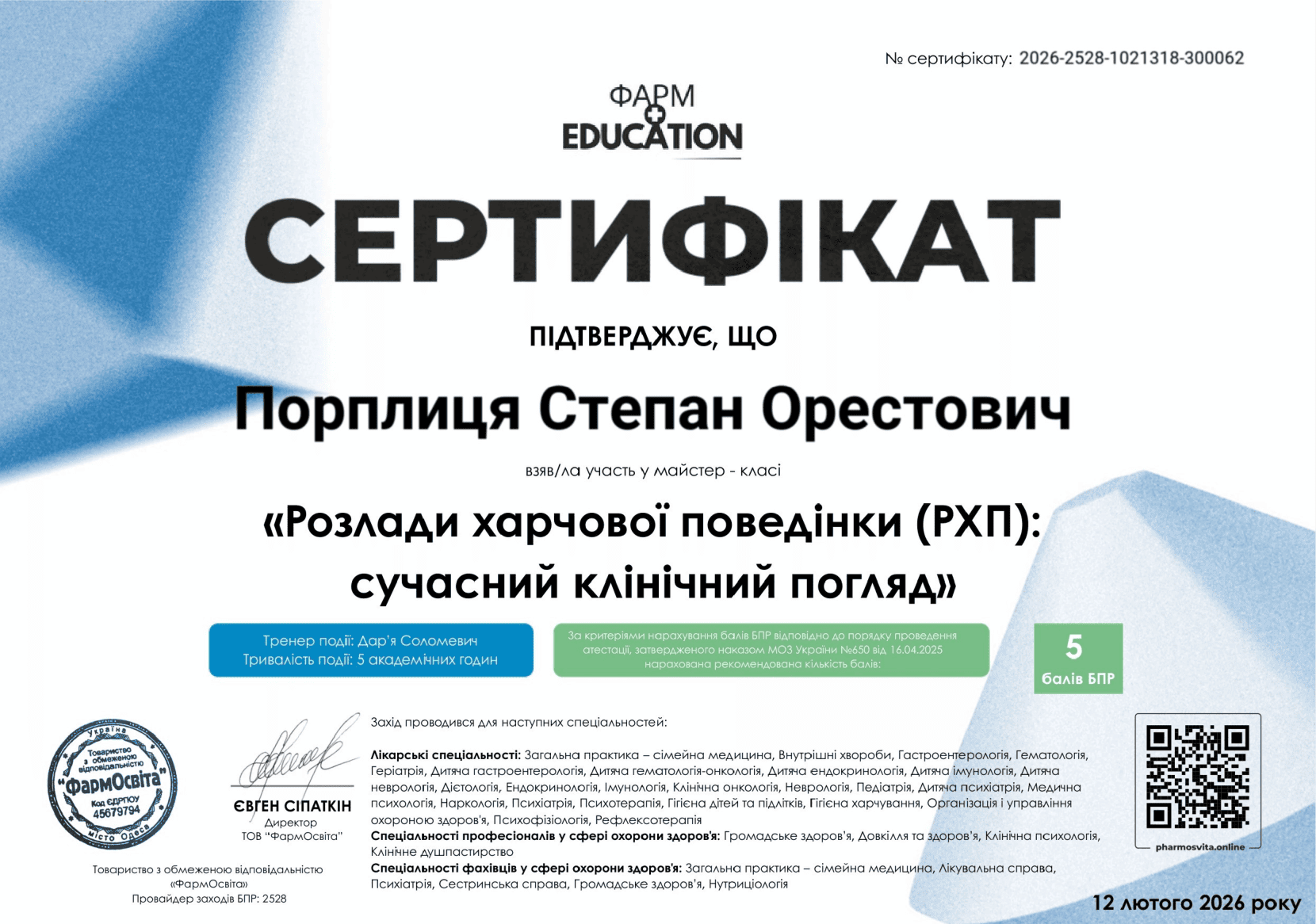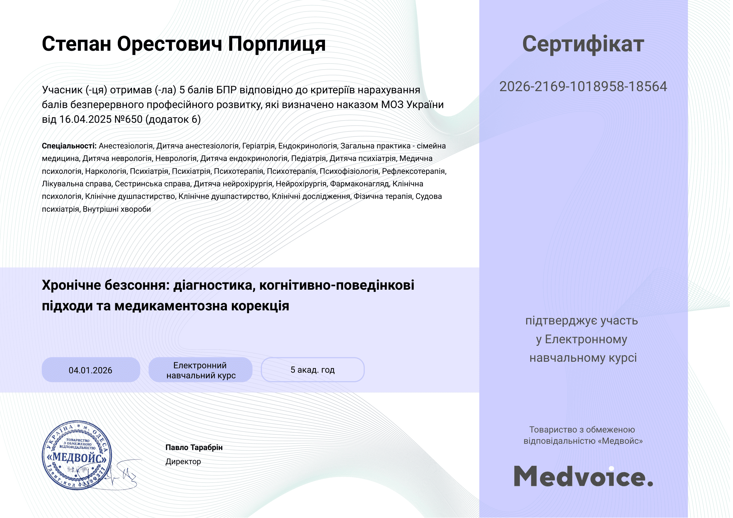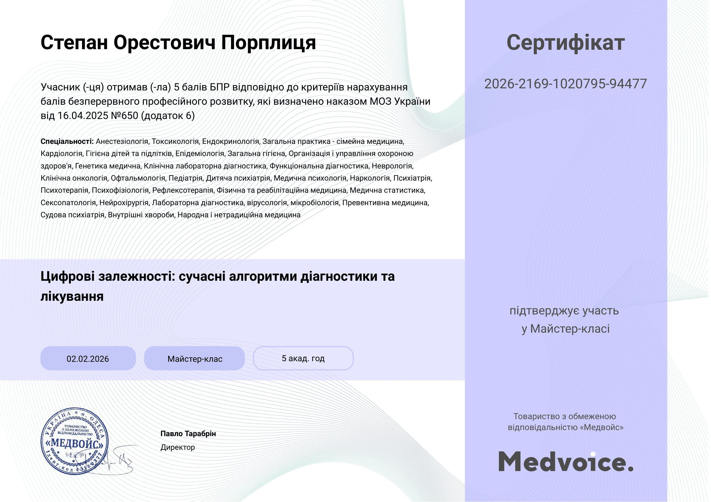 5. Лікарня ТМО «Психіатрія» — практика в умовах стаціонару;